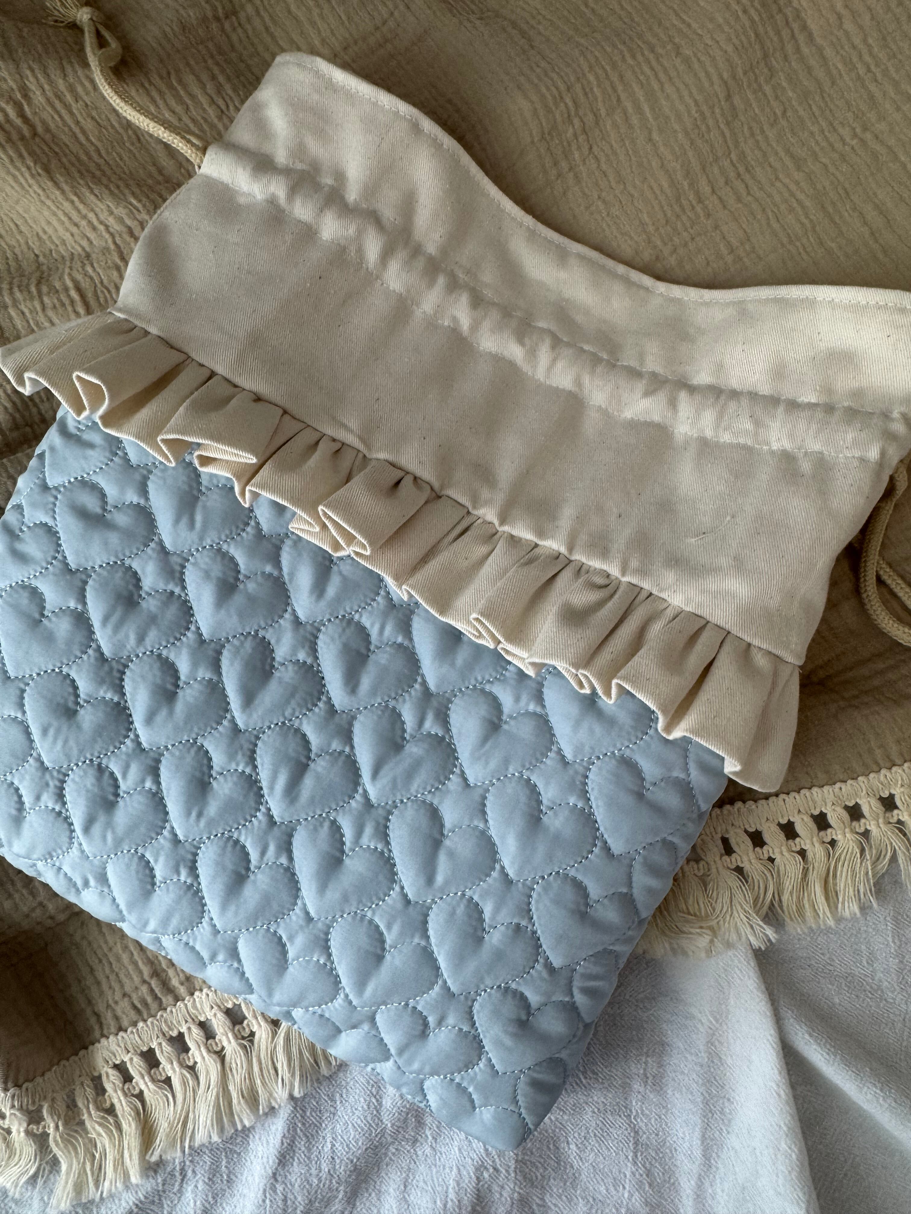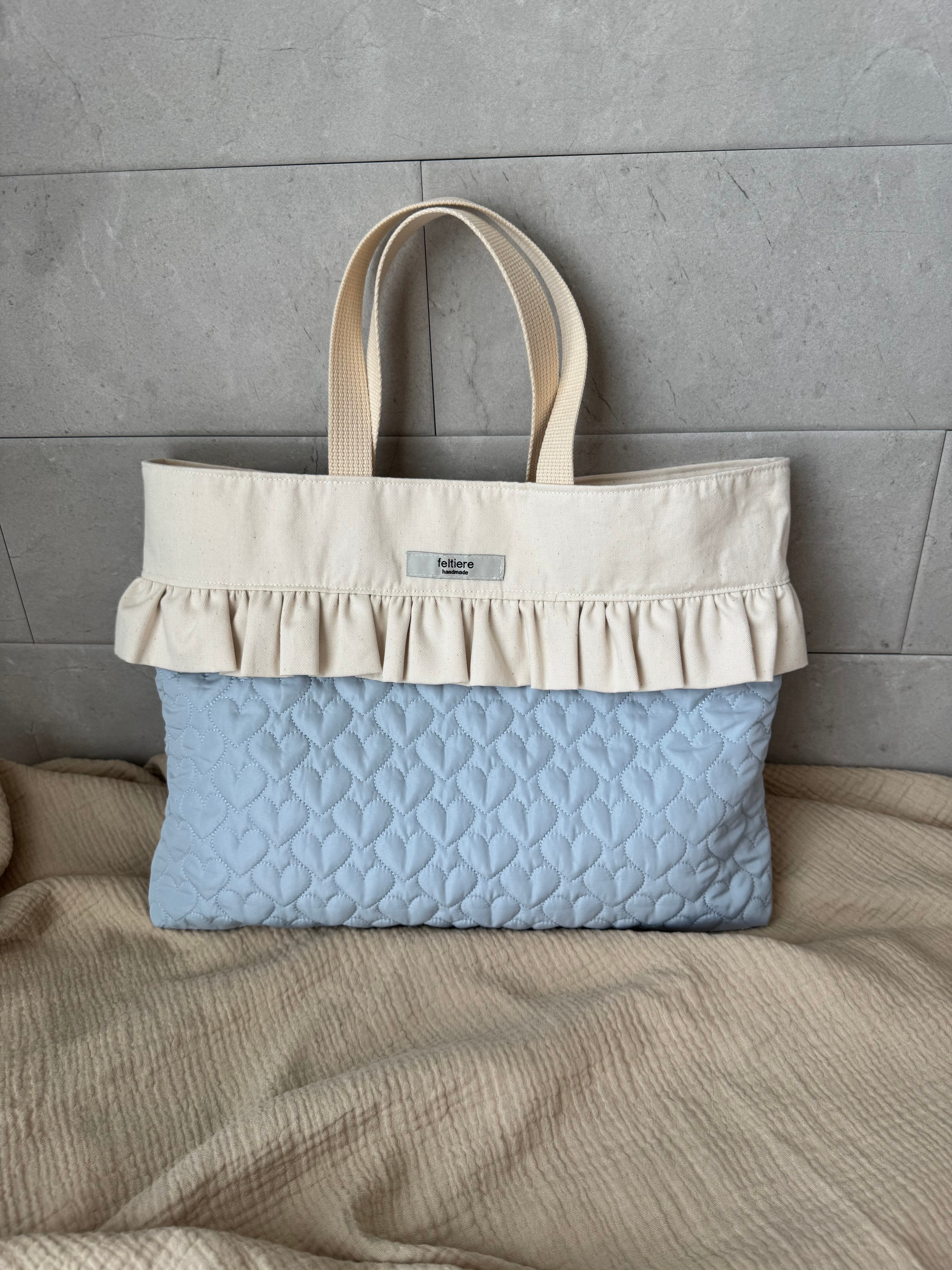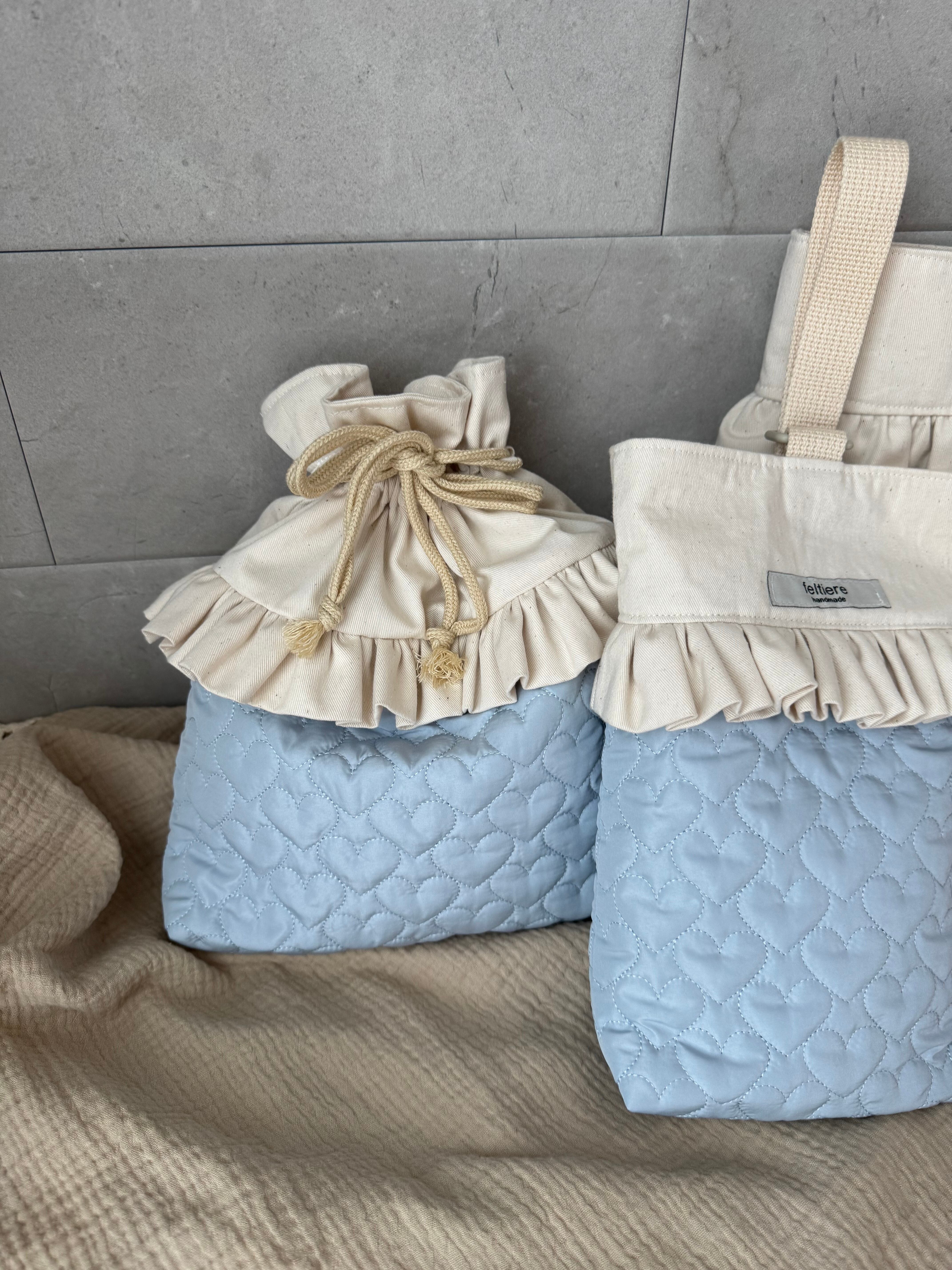 通園グッズ、通学グッズ 白×キルティング水色 3点セット