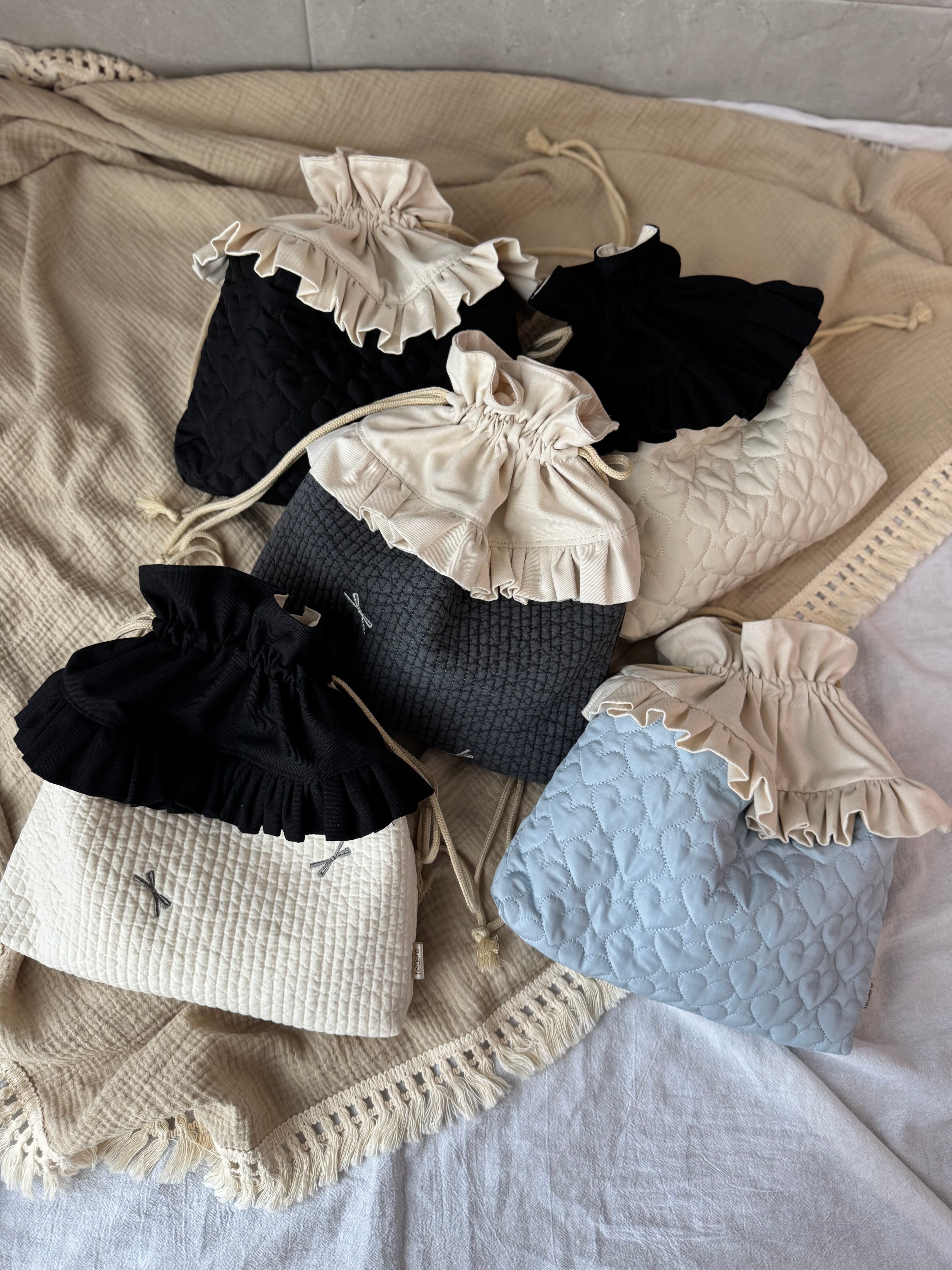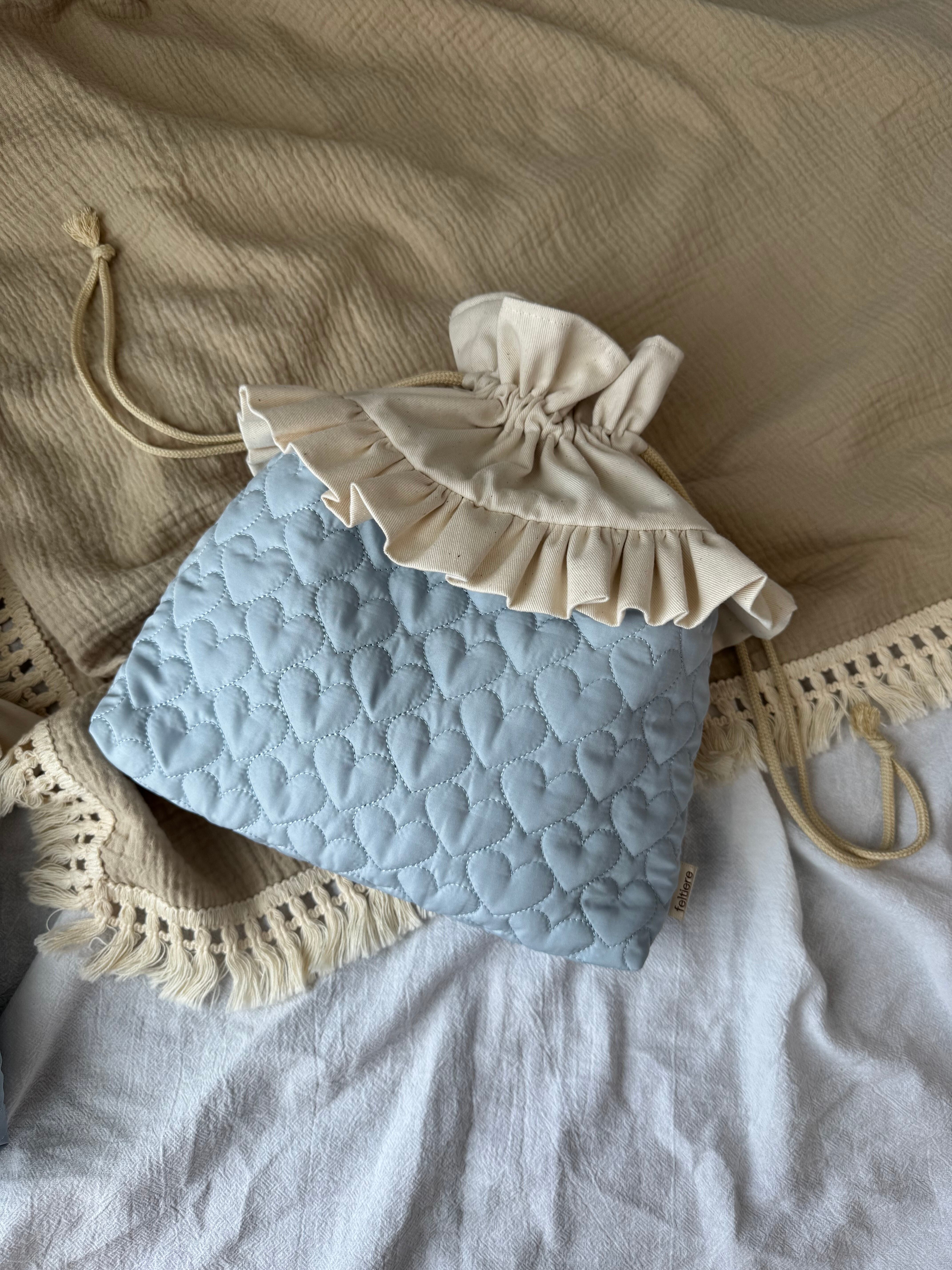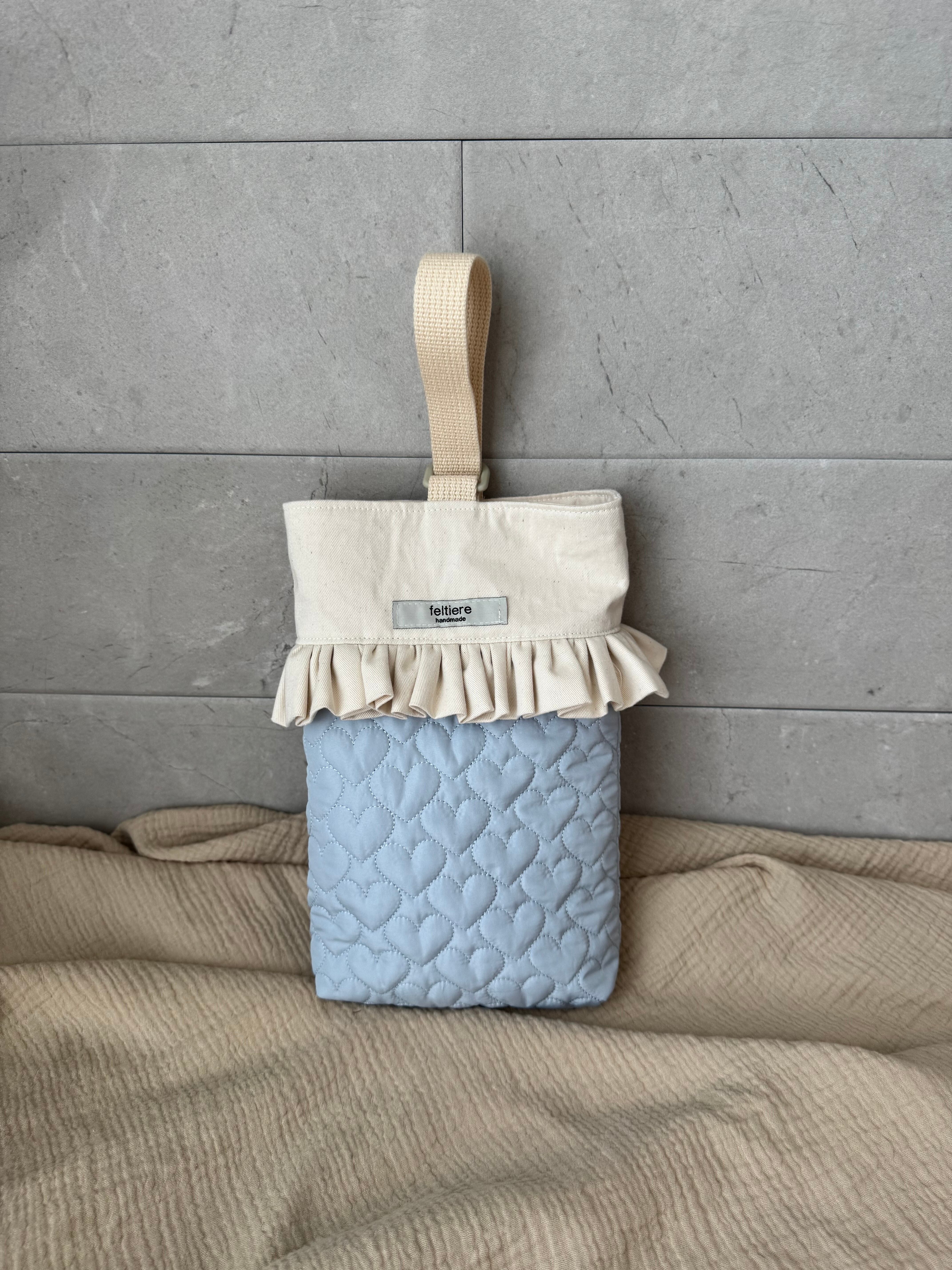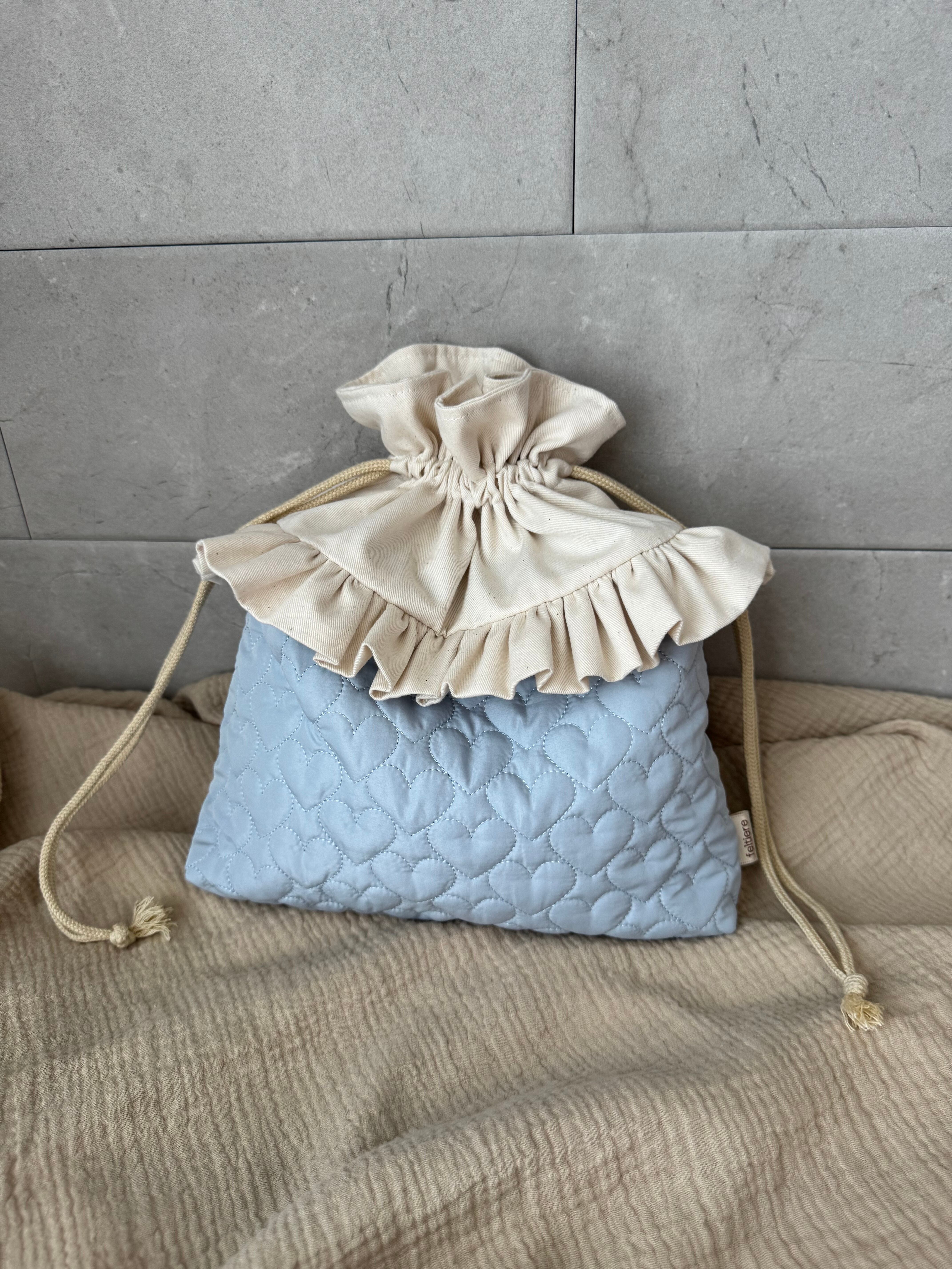 通園グッズ、通学グッズ 白×キルティング水色 3点セット