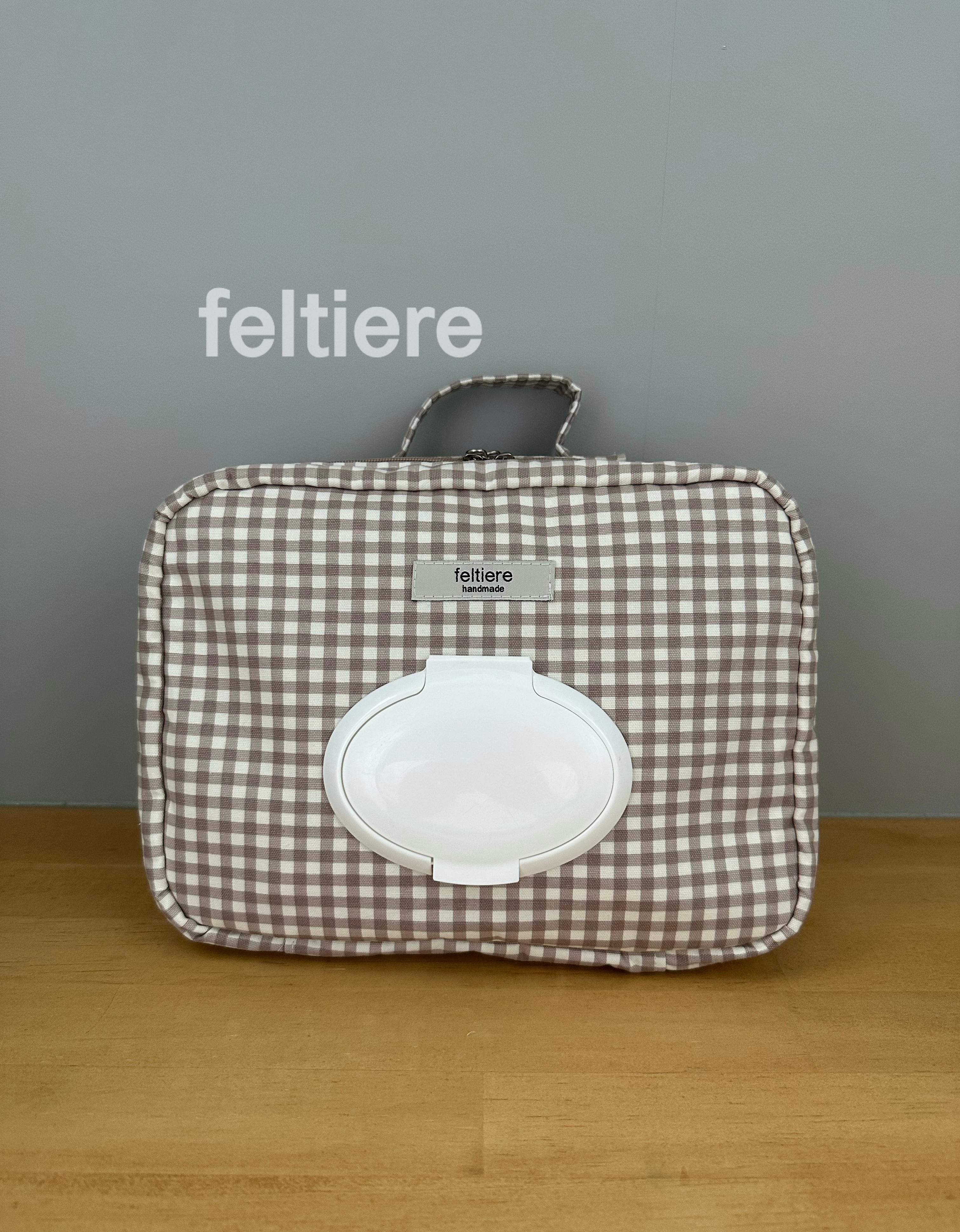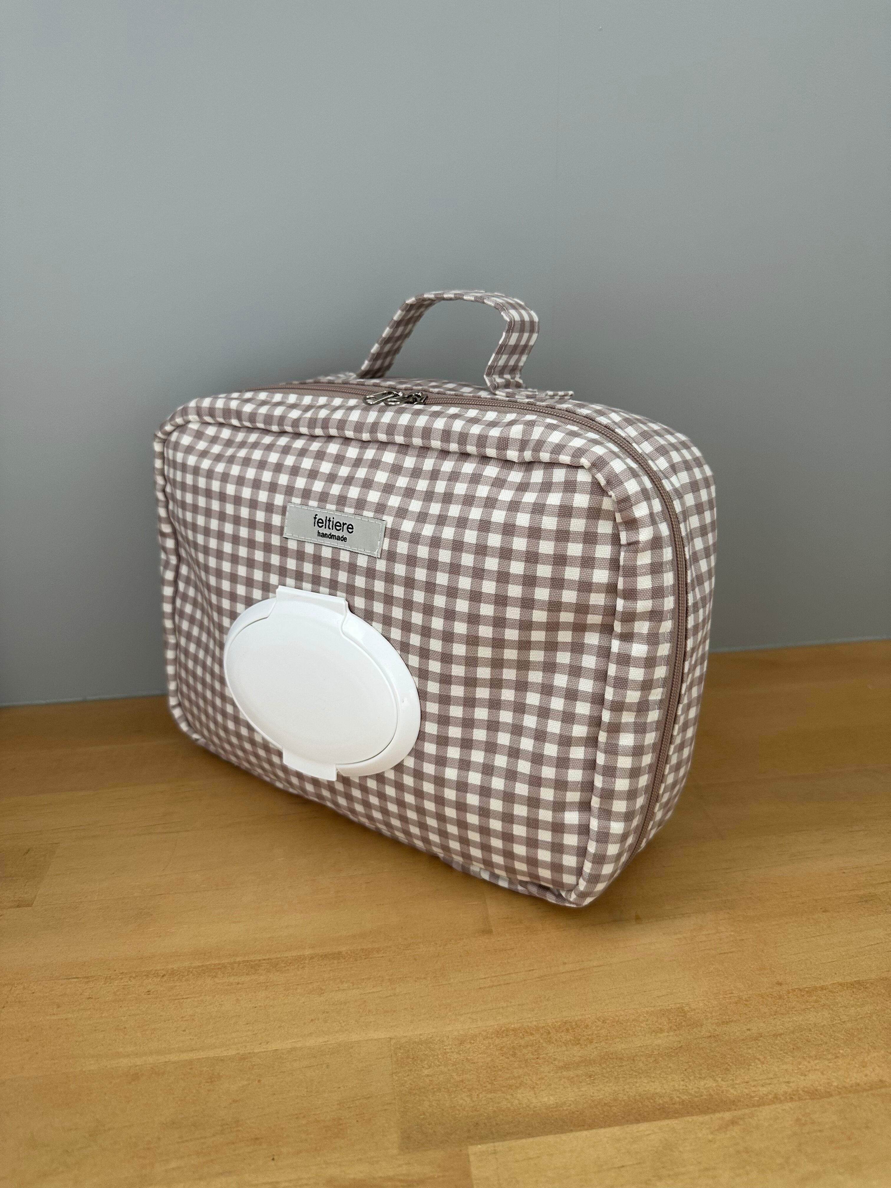 おしりふきフタつきおむつポーチ ギンガムチェック ベージュ L
