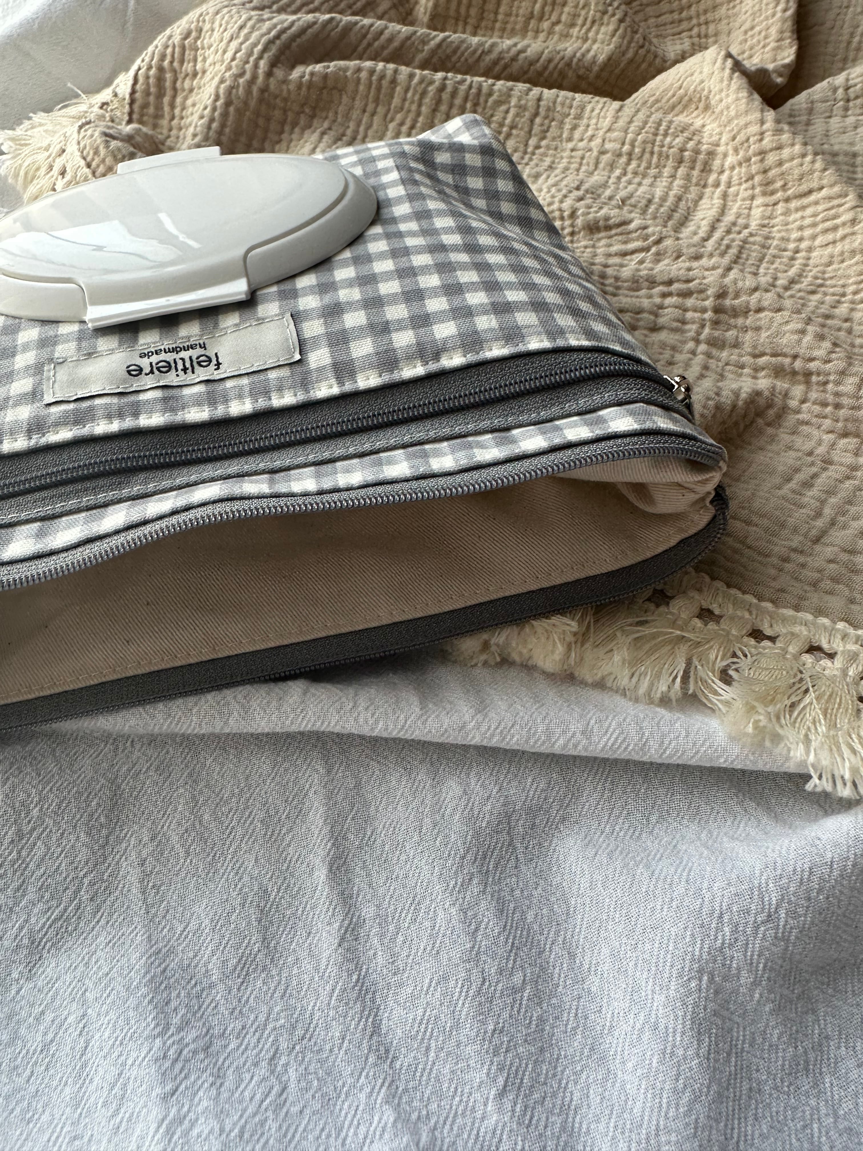 オーダー品 オムツポーチヌビ L ギンガム グレー S