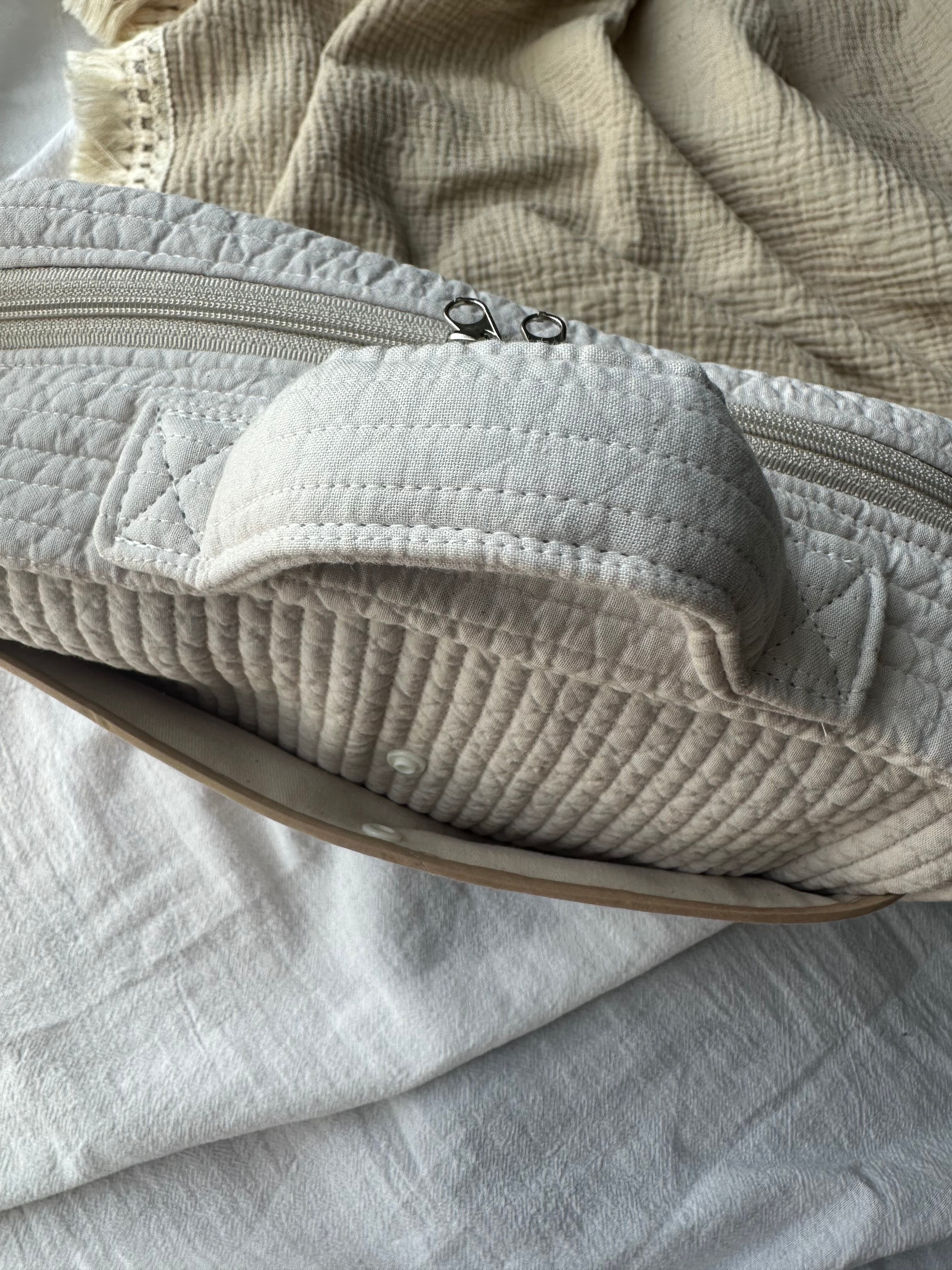 外にはファスナーポケットを付けましたので、おしりふきや、ビニール袋など、入れると便利です^ ^