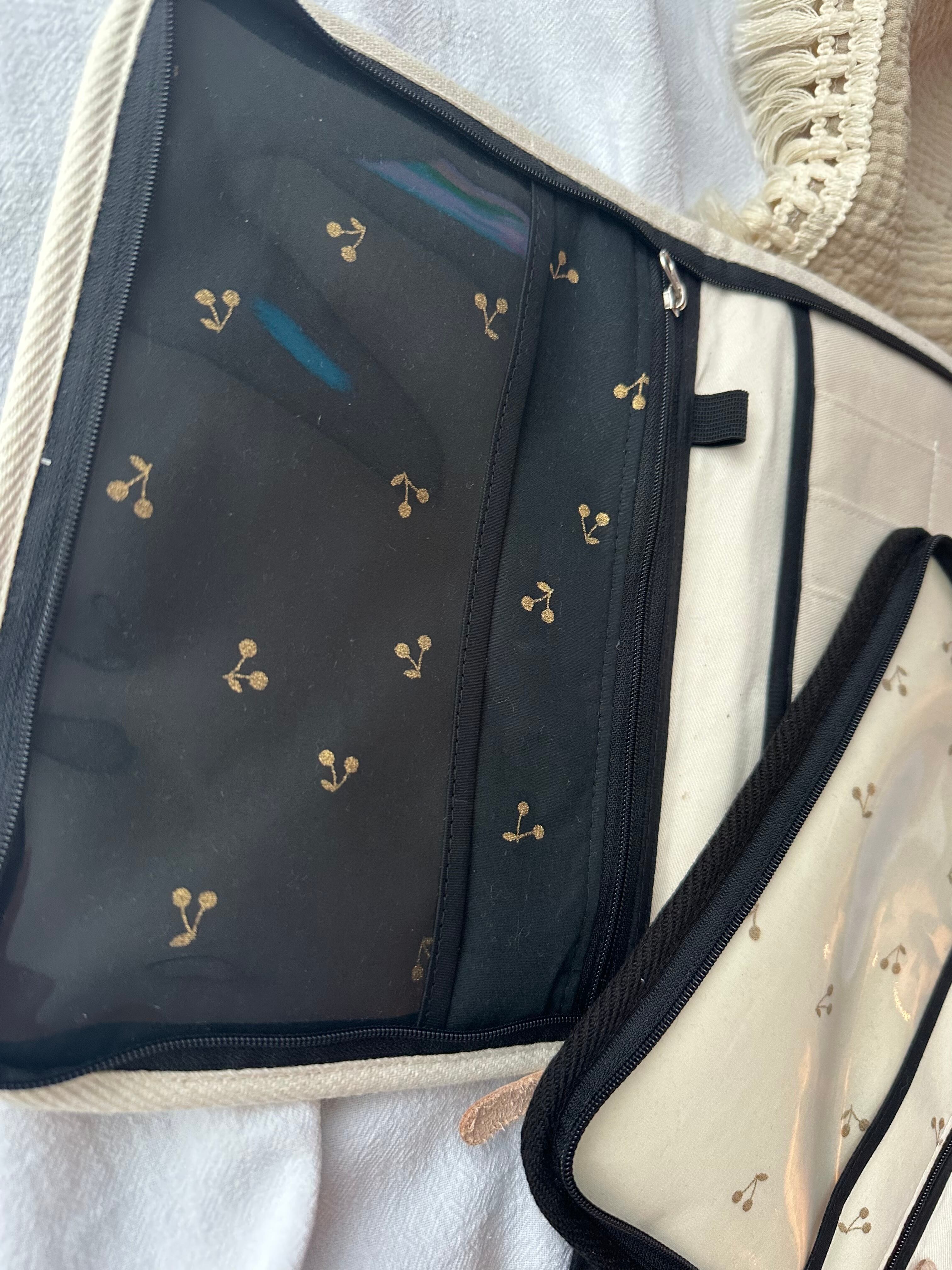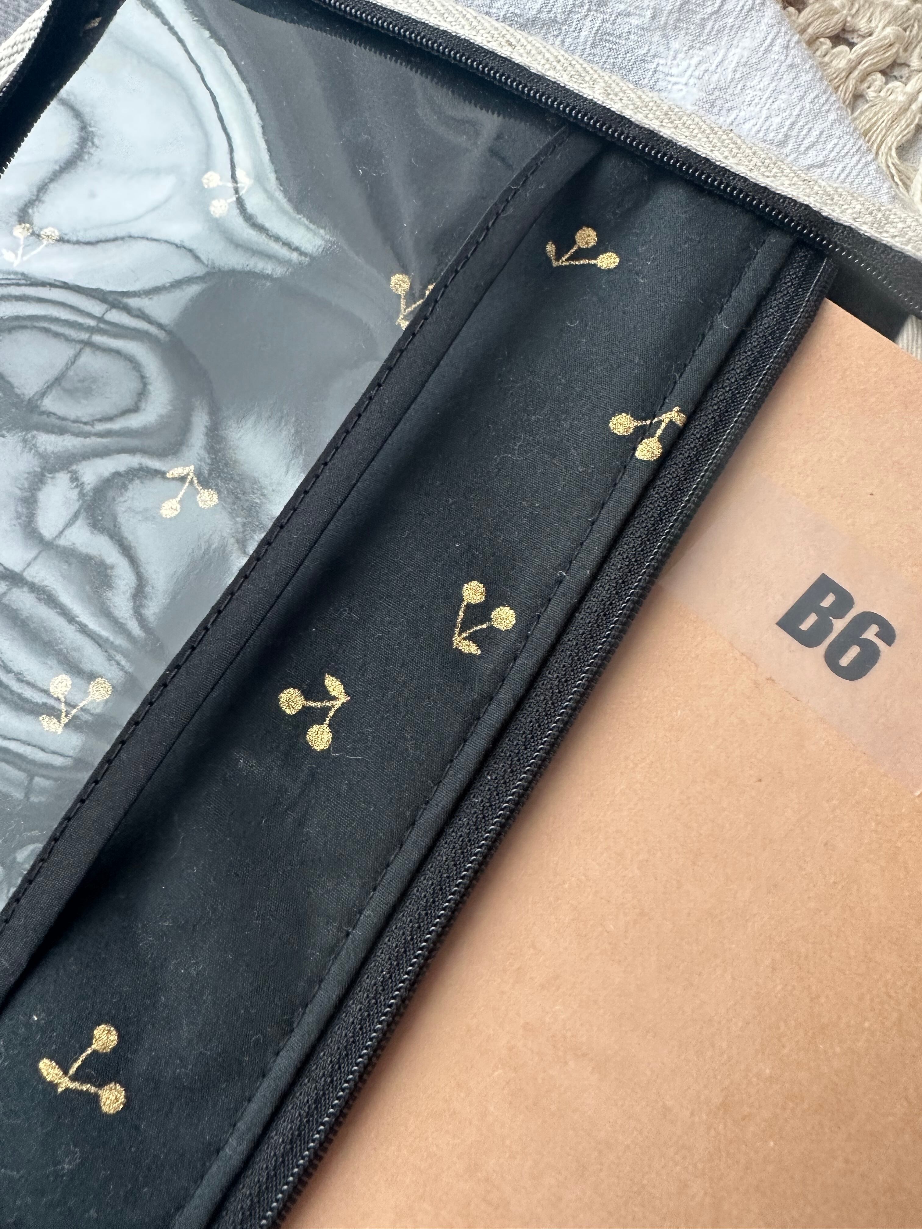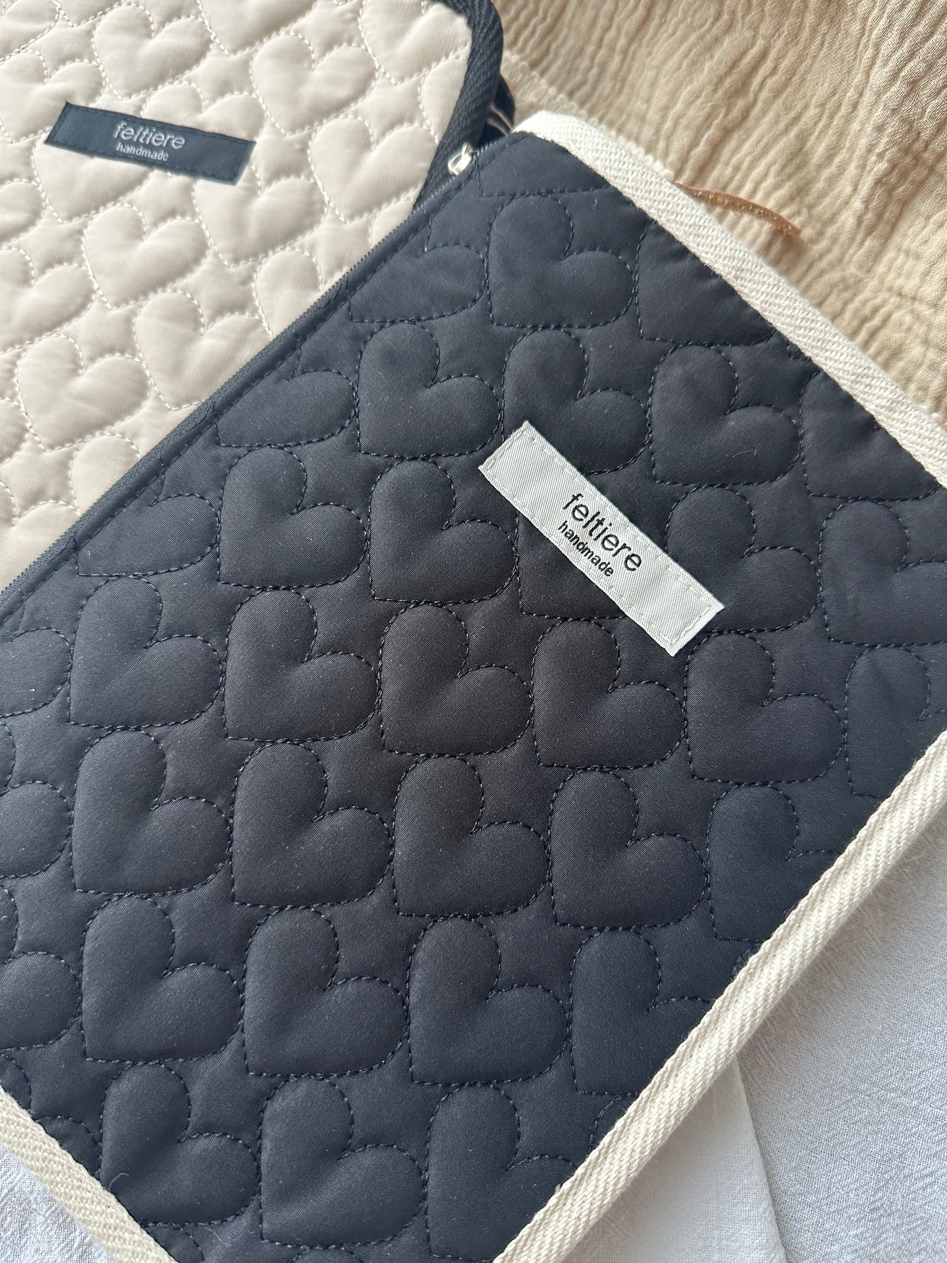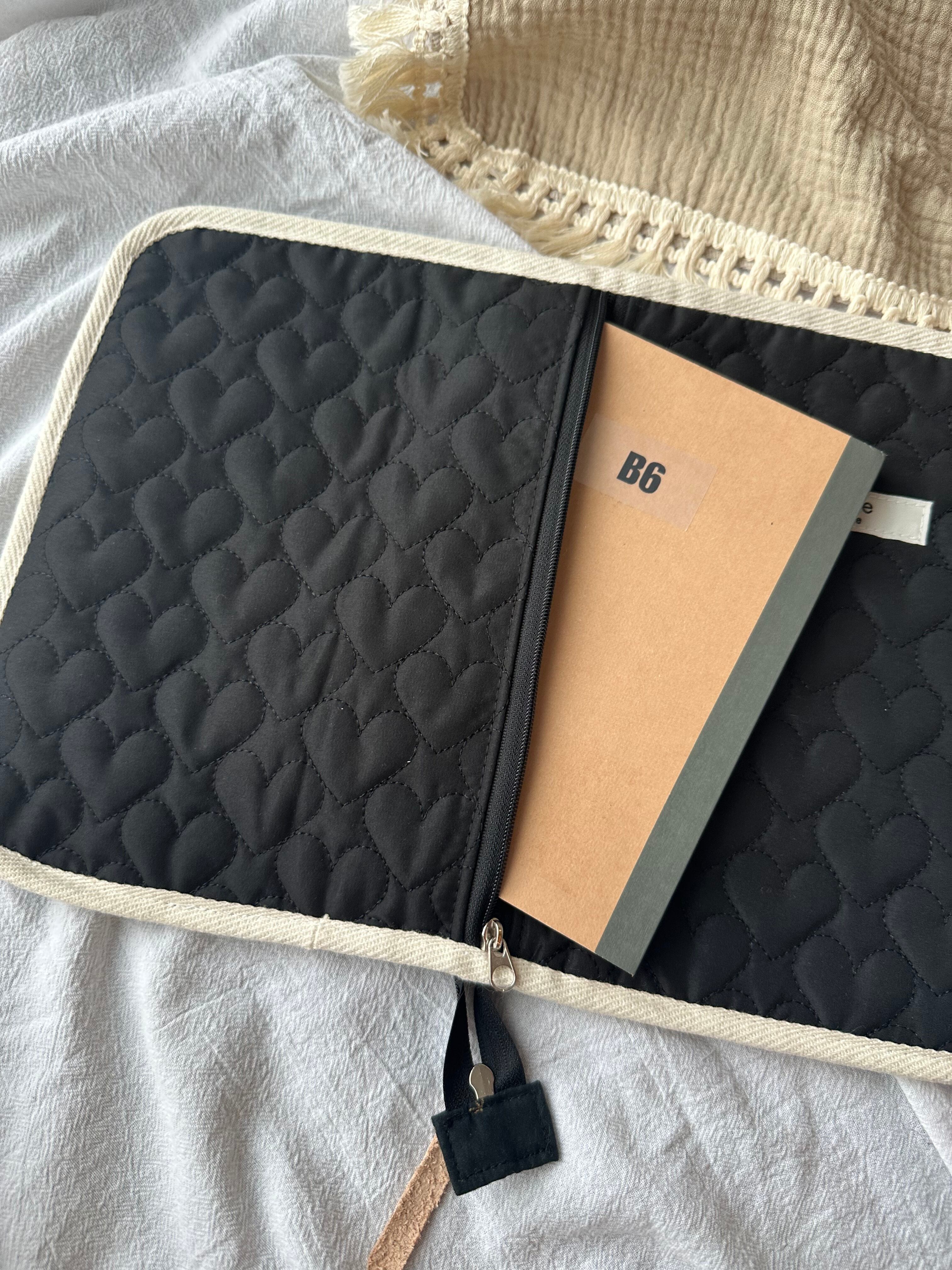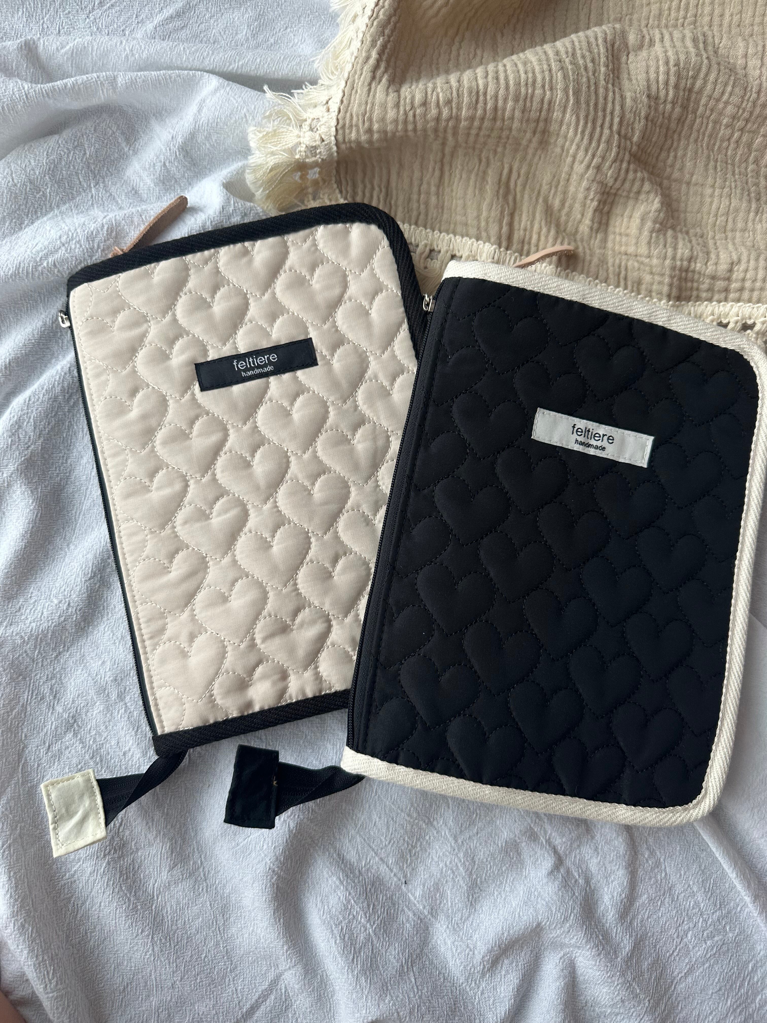 母子手帳ケース キルティング ハート黒×さくらんぼ M
