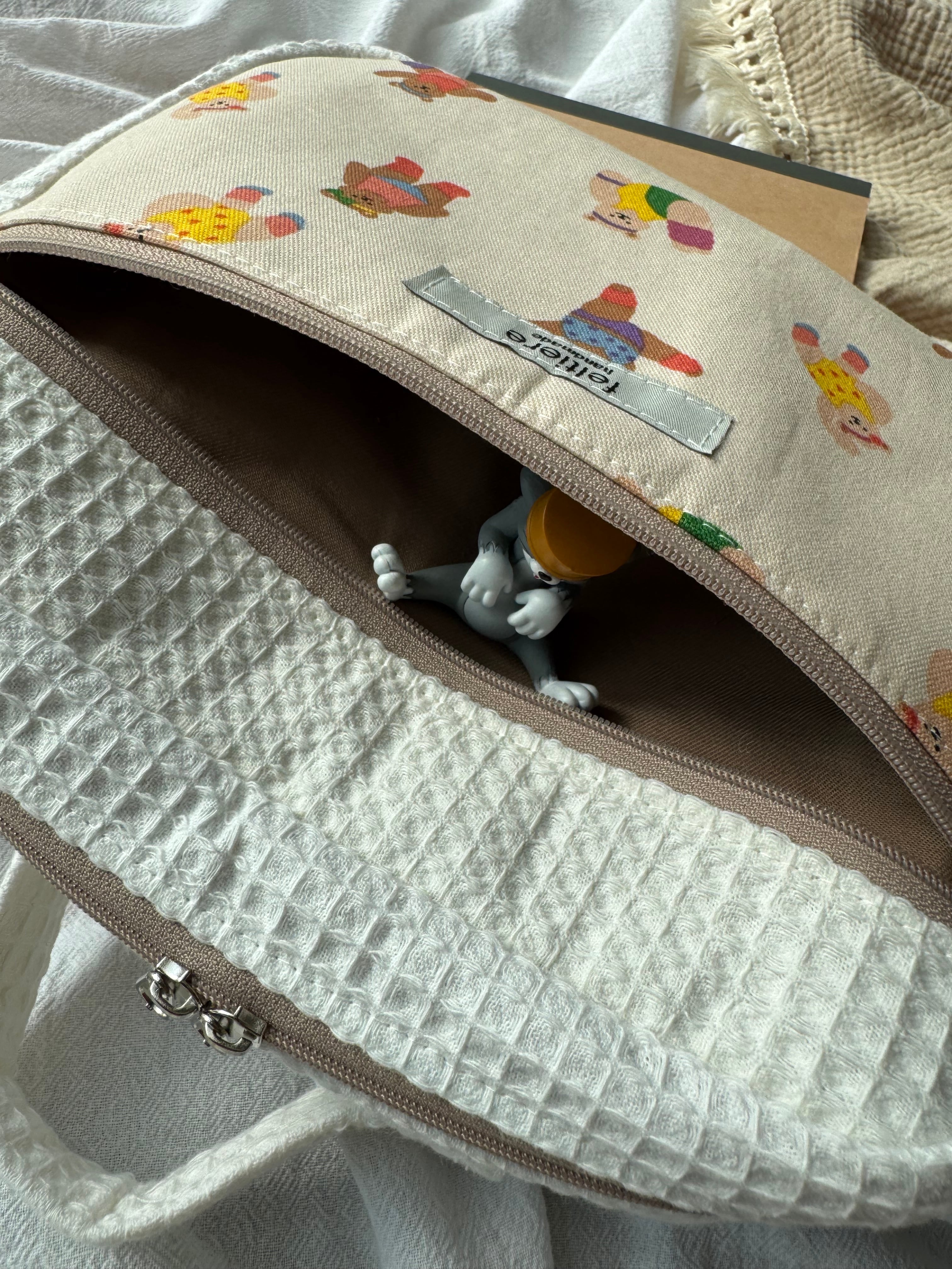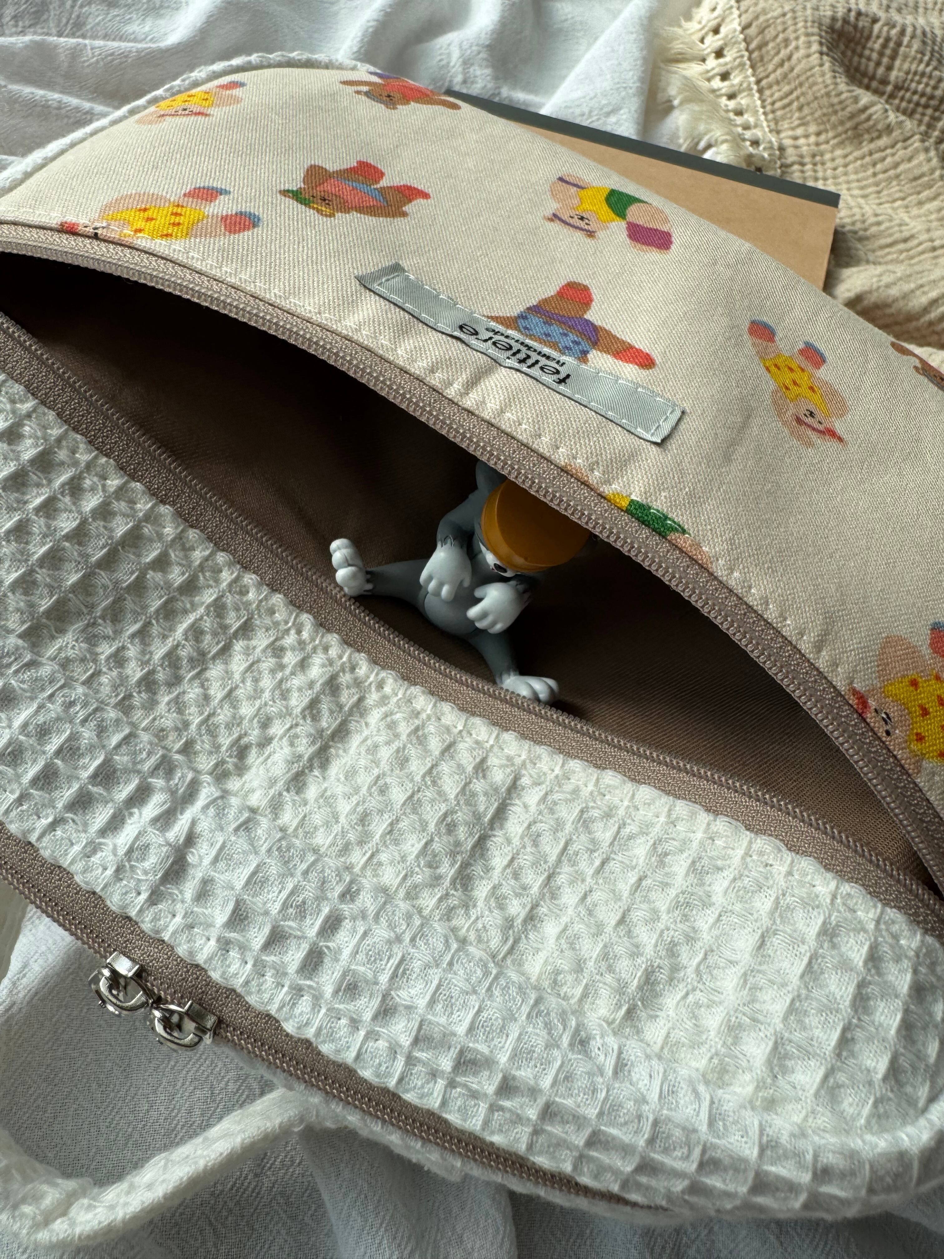 外にはファスナーポケットを付けましたので、おしりふきや、ビニール袋など、入れると便利です^ ^
