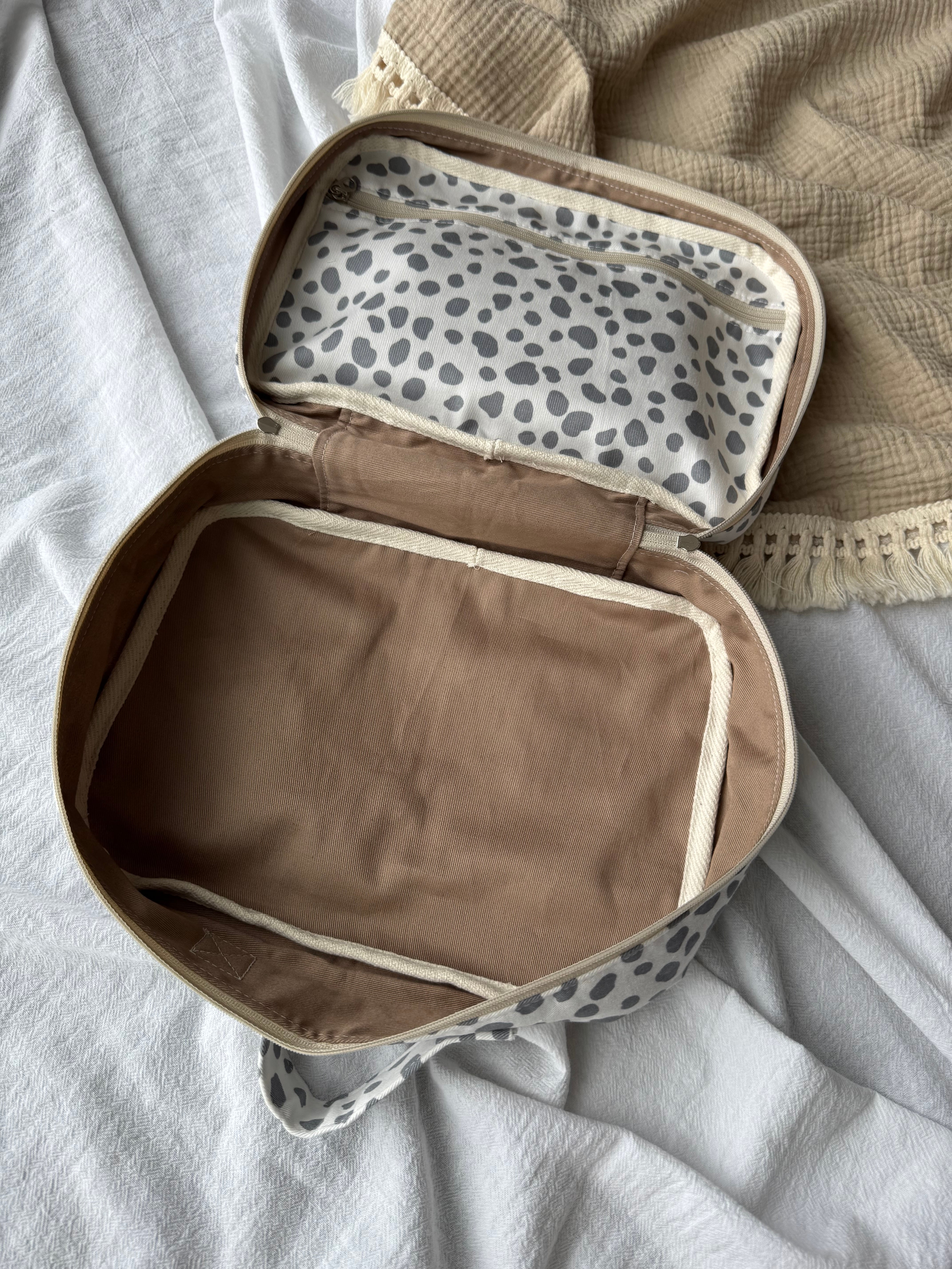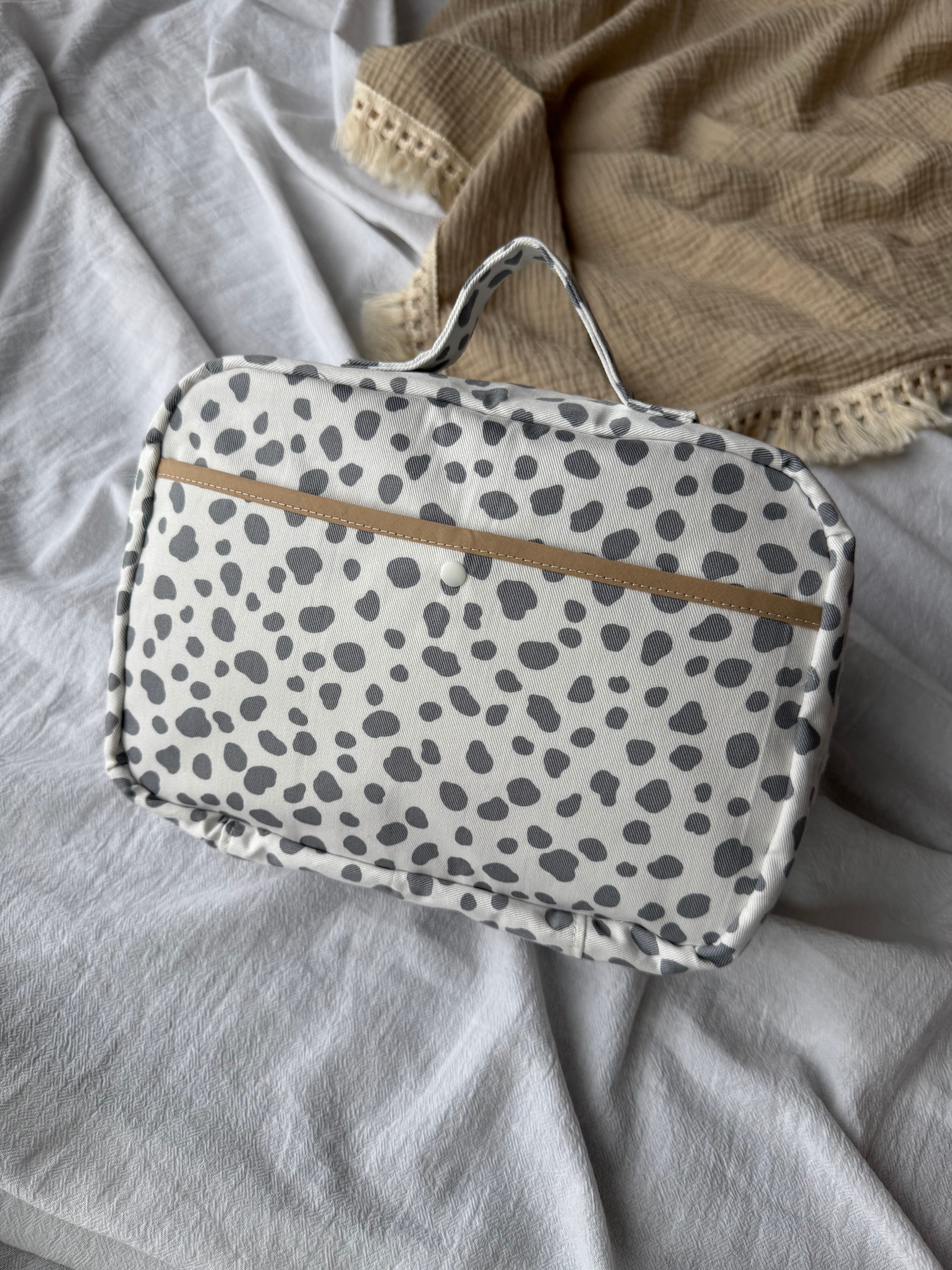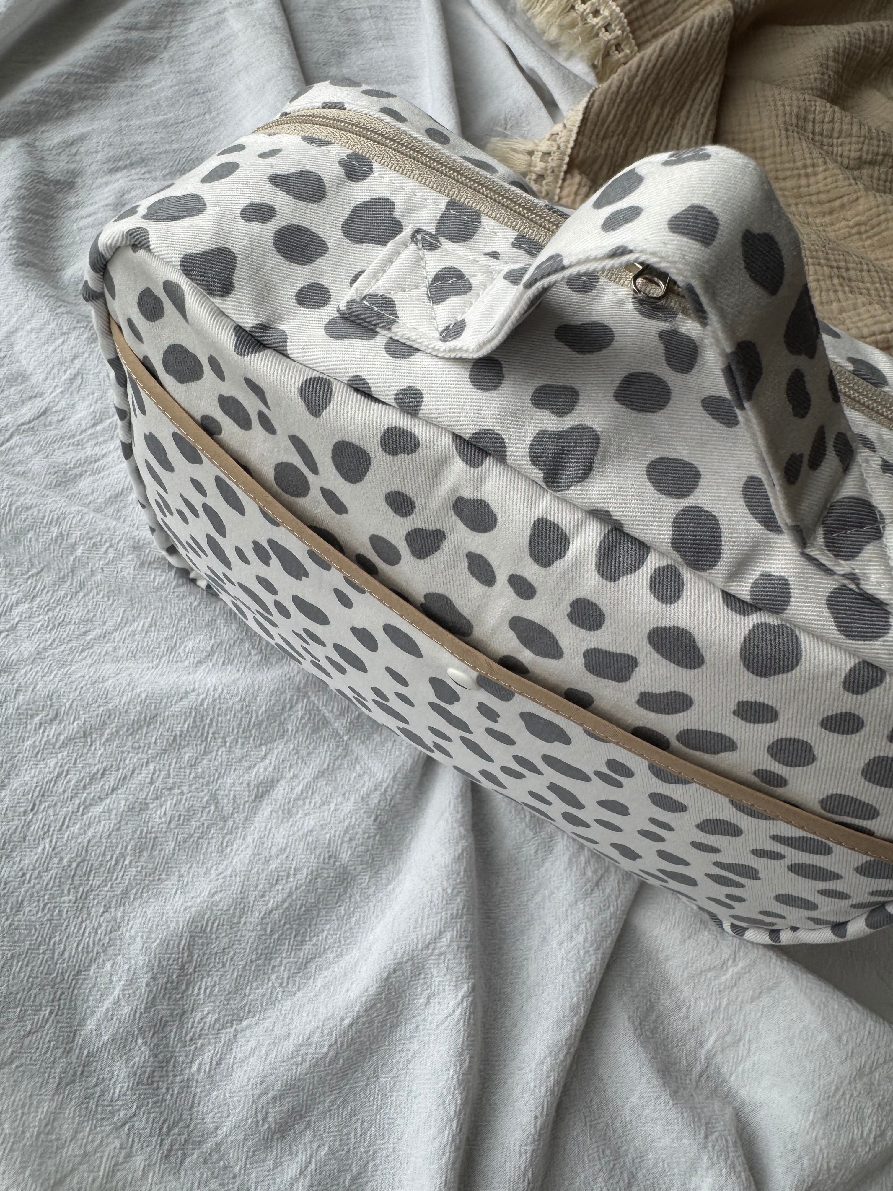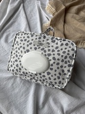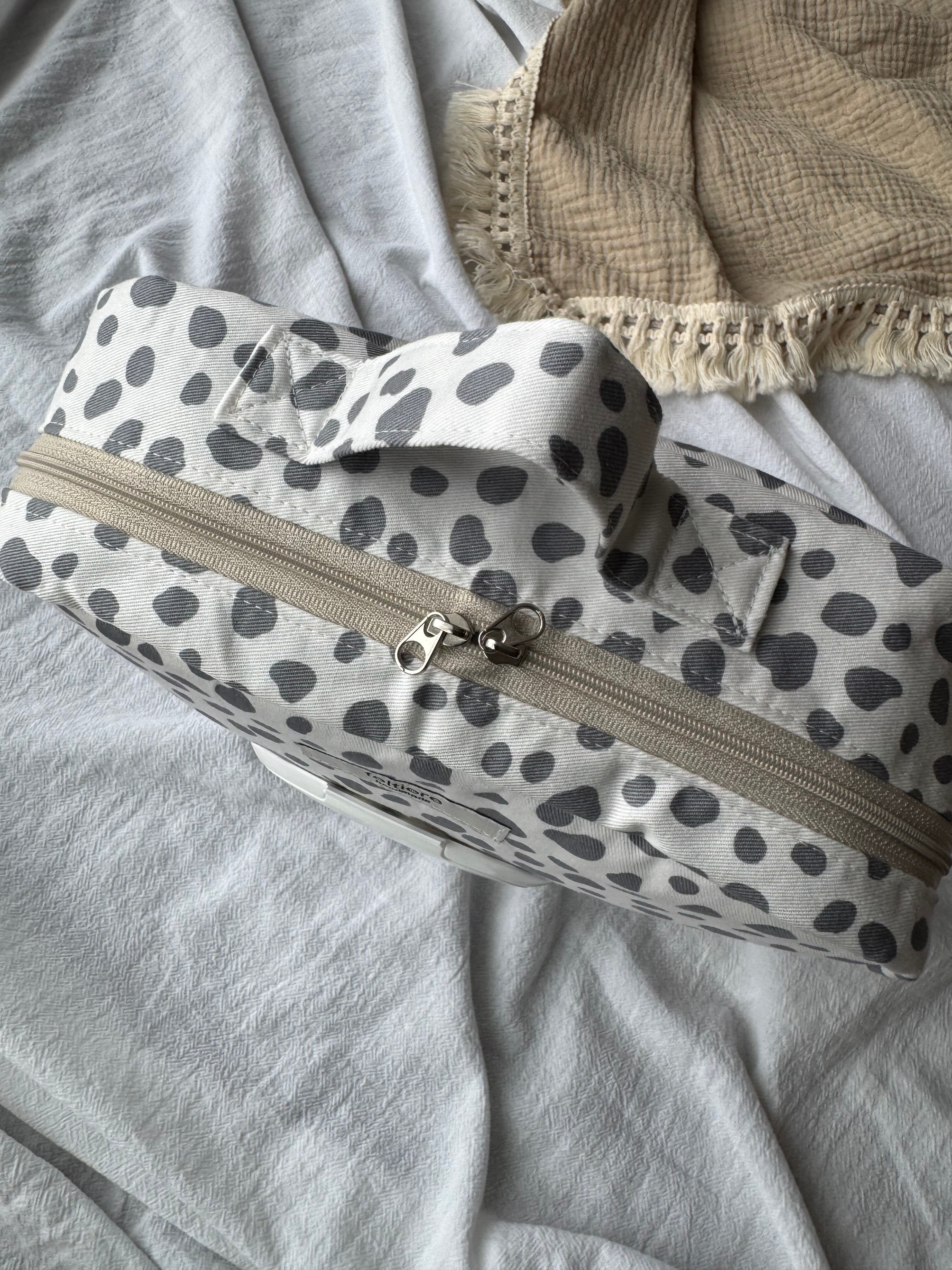 おしりふきフタつきおむつポーチ ダルメシアン 白×グレーL