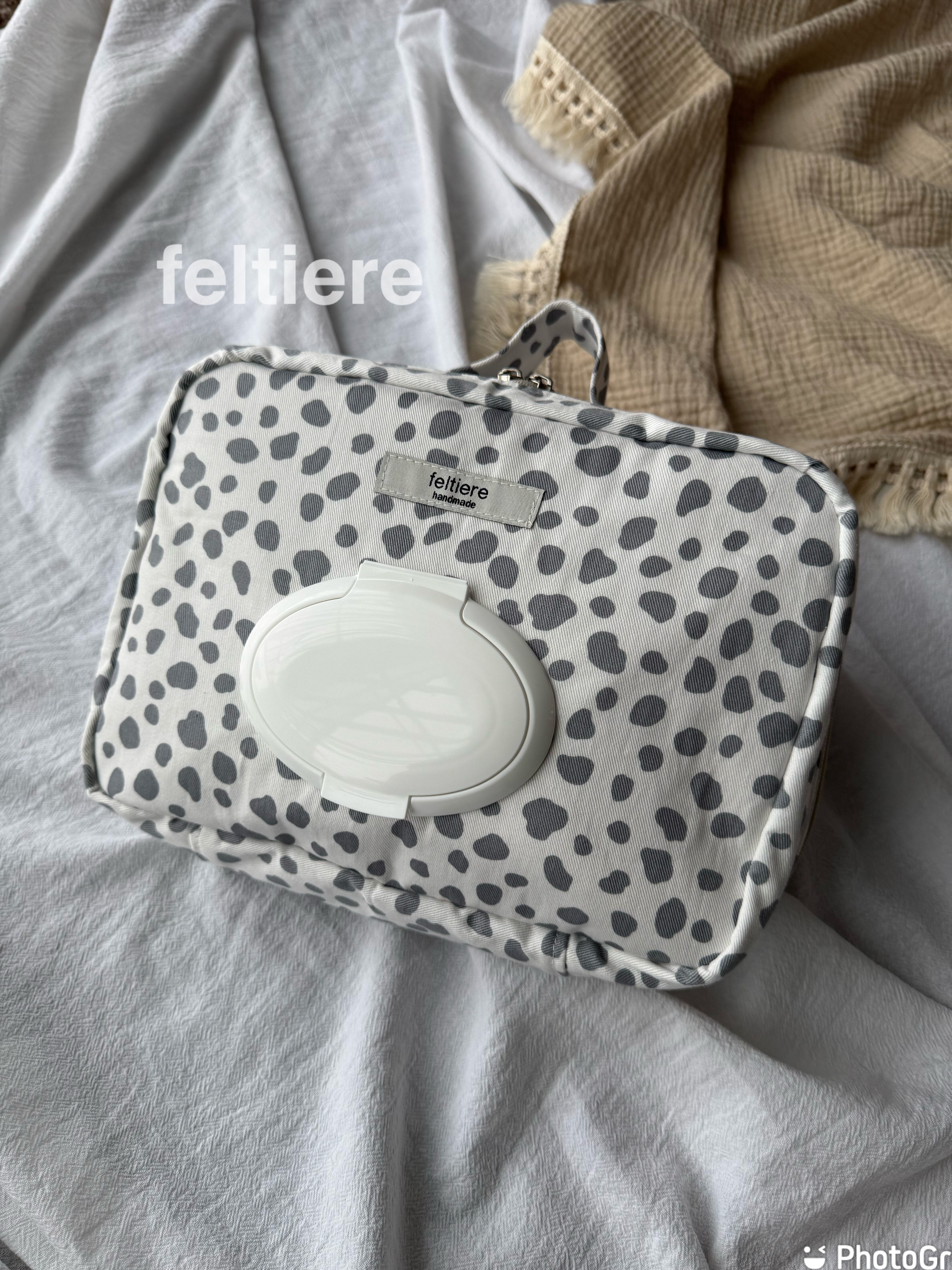 カシメで固定するタイプに比べ、おしりふきの出口をふたぽんで挟んでくれるので、おしりふきの乾燥、を防いでくれ、末永く使っていただけます。